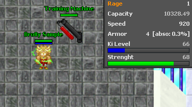 Brolly: gets Strength bonus during anger. Bonus: 12 Strength point(s) for 100 rage.