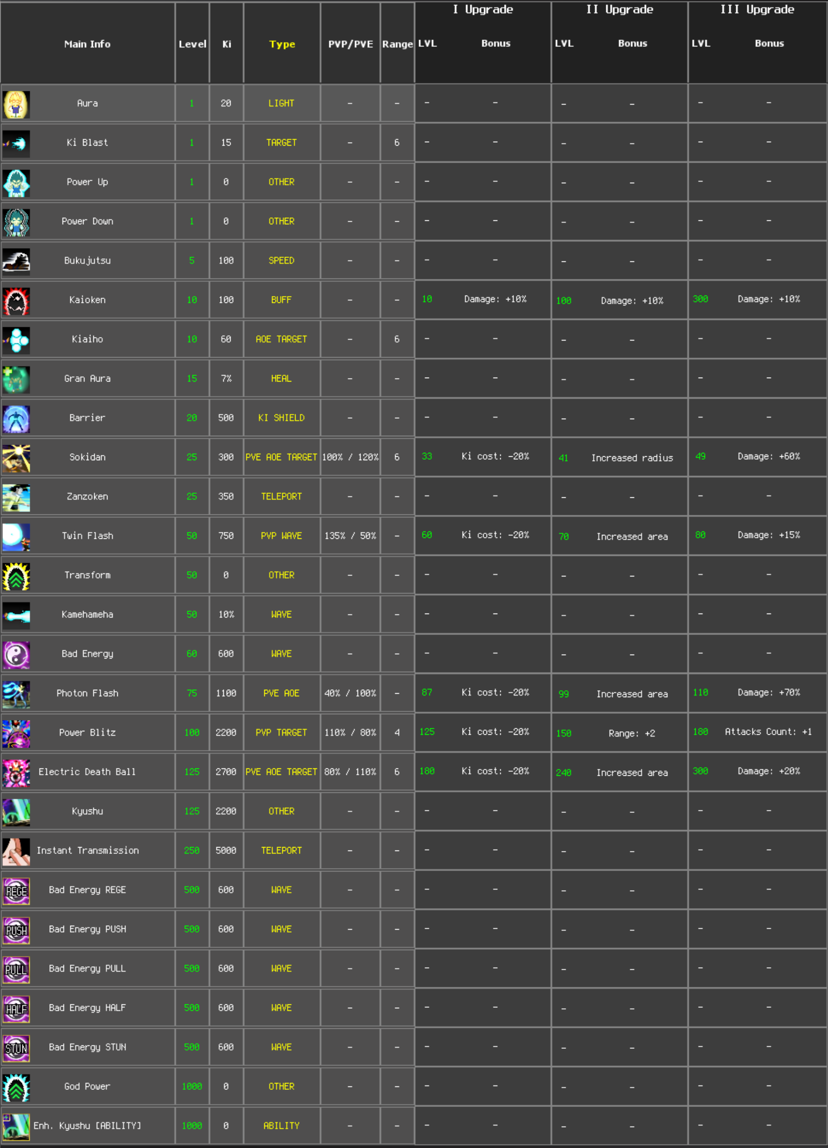 Ki per level