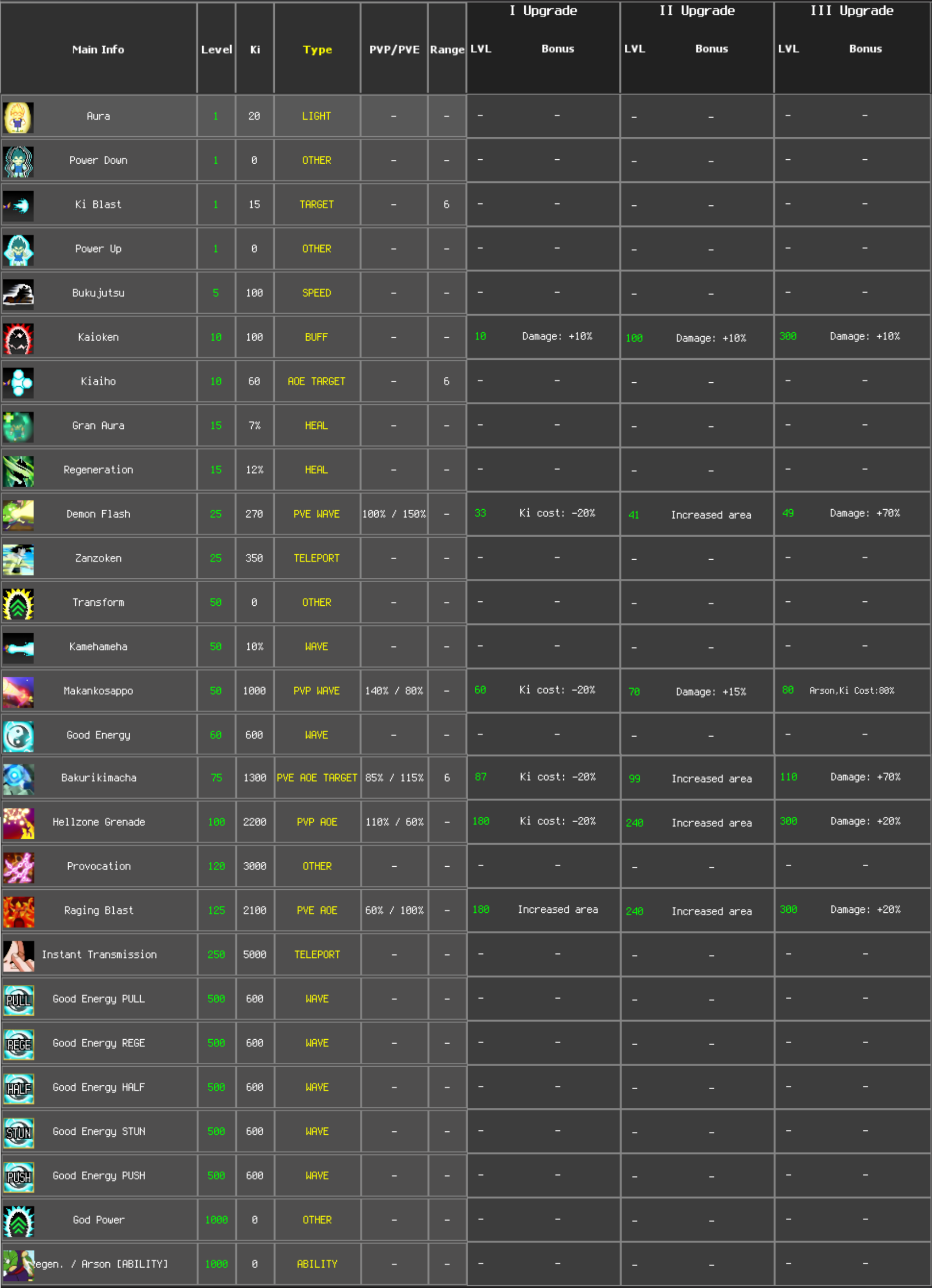 Ki per level