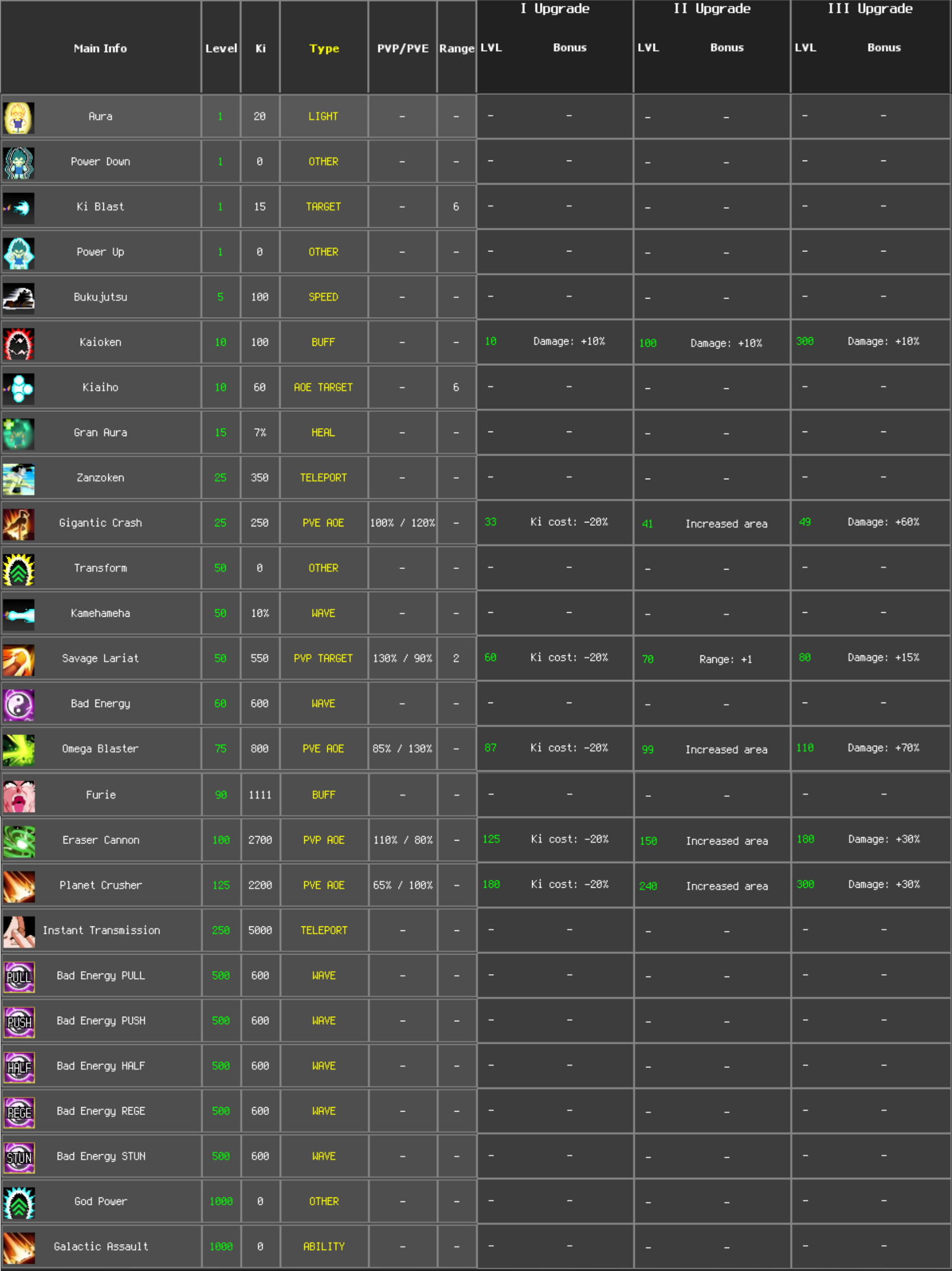 Brolly: gets Strength bonus during anger. Bonus: 12 Strength point(s) for 100 rage.